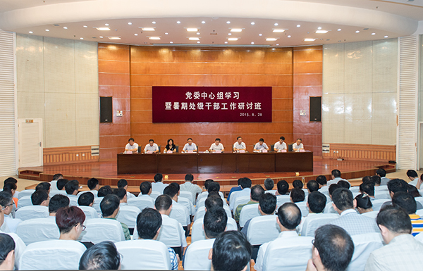 8月28日,学校举办党委中心组学习暨暑期处级干部研讨班,研究部署今后一段时期主要工作。校党委书记徐剑波在会上强调,要认真抓好“十三五”发展规划的制定和落实,统筹谋划,凝聚力量,以科学规划引领学校内涵发展。