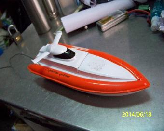 3.冲锋舟一号:船体大小30cm*15cm,动力强劲。船内有独立控制盒,由遥控器遥控船体前进、后退、转向。船后双螺旋桨均可单独控制,遥控距离10m。壳体流线型,密封性好,线条颜色鲜艳,适合8岁以上儿童。