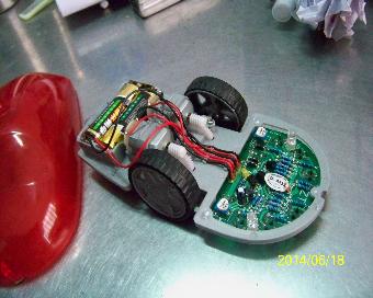 1.循迹鼠标车: 车前配备自主研发的红外循迹模块,外加赛车马达,做成的低成本循迹鼠标车。配件需手工装配,车速可三级调节,循迹较灵敏,适合7岁以上儿童。外壳有红绿两种,外形为鼠标形状,大小为20cm*8cm,轻巧灵便。