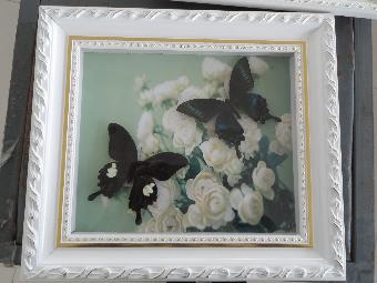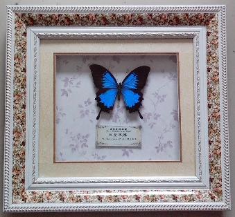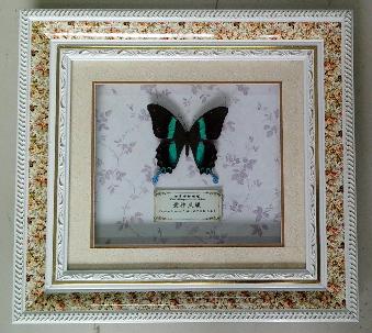 产品简介:绚丽的世界珍稀蝴蝶配上精美时尚的碎花白金边框,高贵典雅自然流露,有品位、有档次是馈赠、家装的绝佳选择。